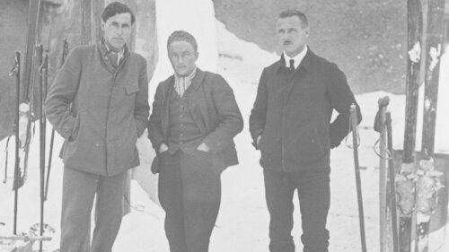Der aus Dornbirn stammende Ernst Janner (r.) war während des Ersten Weltkriegs als Skiinstruktor tätig. Anfang der 1920-er Jahre konnte er die Verantwortlichen des Unterrichtsministeriums von der Errichtung eines Heims für den Skiunterricht von Schüler:innen, Lehrer:innen und Studierenden überzeugen und wurde damit zum Ideengeber des „Bundessportheims“. Mit seinem mehrfach aufgelegten Buch „Arlbergschule“ trug Janner maßgeblich zu der von Hannes Schneider entwickelten Lehrmethode bei.